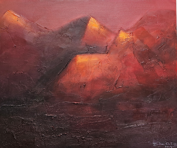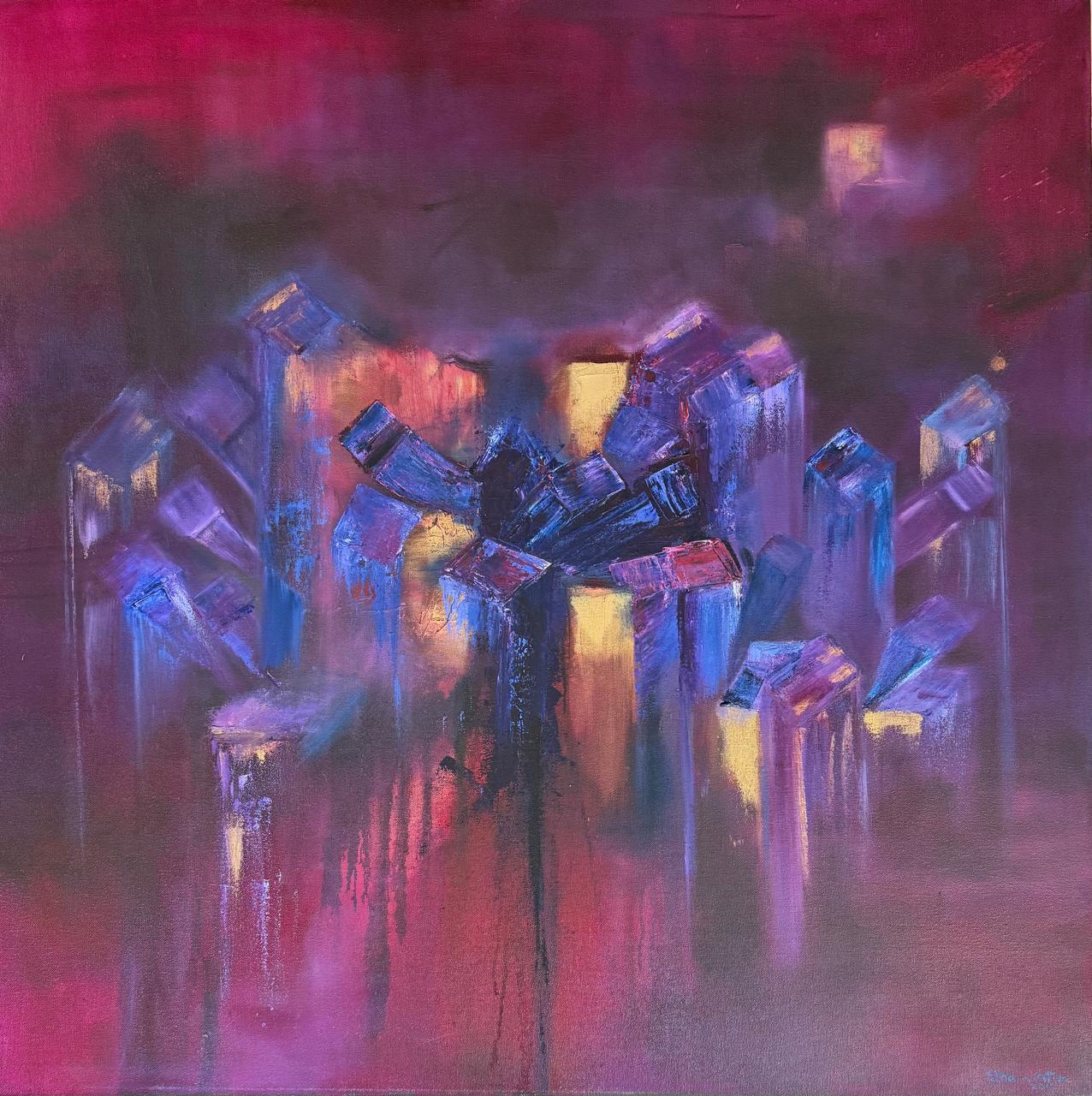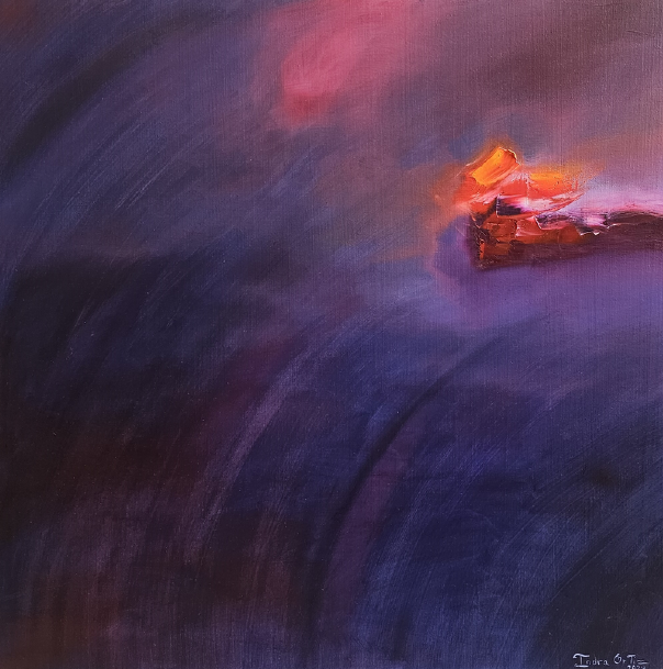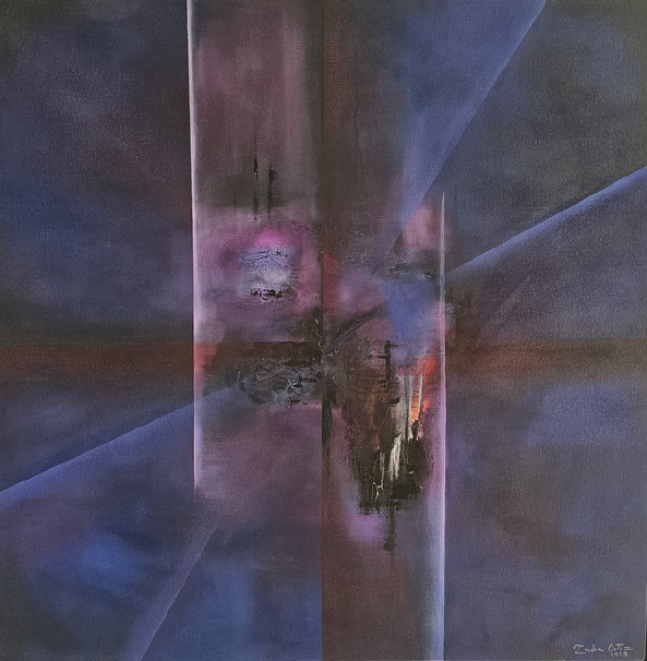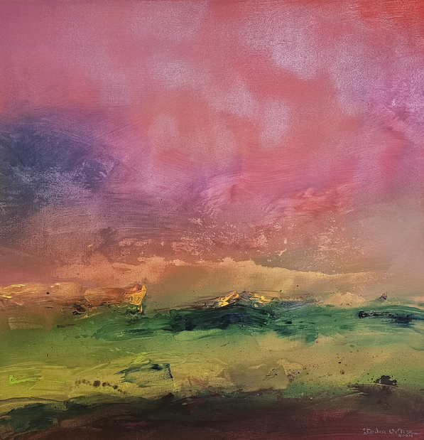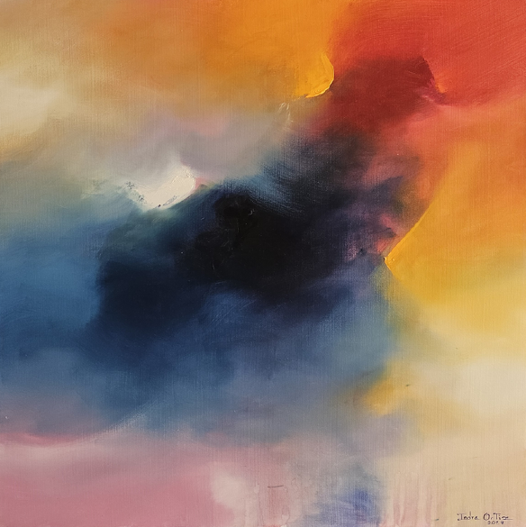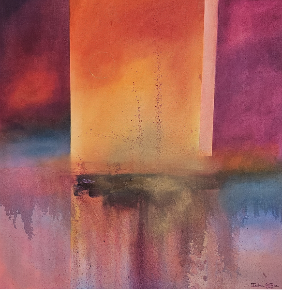 En este proceso, el color se vuelve poesía visual: cromatismos que sugieren ritmos, silencios y atmósferas capaces de evocar tanto lo íntimo como lo universal. No se trata de representar lo real, sino de provocar estados de contemplación donde cada obra funciona como un espejo sensible, siempre distinto, para quien la observa. El espectador no se enfrenta a imágenes cerradas, sino a un espacio de resonancias donde es posible proyectar la propia memoria, las emociones y los sueños. Así, cada cuadro de Indra Ortiz es un poema abierto, hecho de pigmentos y transparencias, que encuentra su plenitud en la mirada de quien lo contempla.