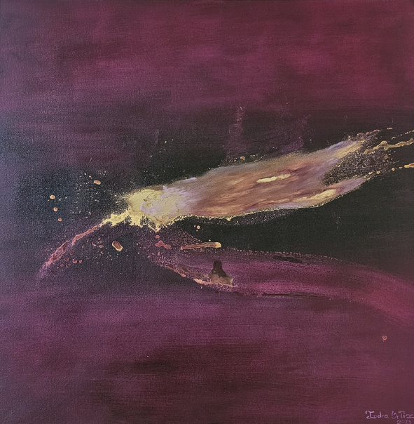 El arte abstracto contiene libertad, no solo performativa por parte del artista, sino cautiva por parte del que observa, es decir, que dentro de este método plástico, la línea no contiene al creador ni el contenido al espectador, lo cual, ocasiona una relación que puede ser inmediata, la del sentir, sin juzgar o indagar, solo se padece, cual el vivir mismo significa; es por ello que a principios de siglo XX los artistas dejaron la representatividad contextual y se dedicaron a sentir el trazo en el lienzo, a vibrar con el color, el reto así, se volvió condicionar al ojo y al cerebro a admirar sin entender, quebrando lo establecido al causar la ruptura de lo figurativo, apelando a la condición más humana: la de sentir, entendiendo esto último en su plenitud sublime. La obra de Indra Ortiz, convierte en protagonista absoluto al color. Cada trazo, cada transparencia y cada superposición cromática construyen un universo autónomo, liberado de toda referencia figurativa, donde la abstracción se manifiesta como un territorio de exploración inagotable. Lejos de ser una ausencia, la abstracción en estas piezas es una presencia intensificada: vibraciones de color que laten sobre la superficie y nos invitan a sumergirnos en la experiencia sensorial, a padecer como hemos mencionado ya, los placeres del sentir o dar sentido. La materia pictórica, despojada de narración, se transforma pues en un lenguaje abierto que habla directamente a la sensibilidad del espectador.