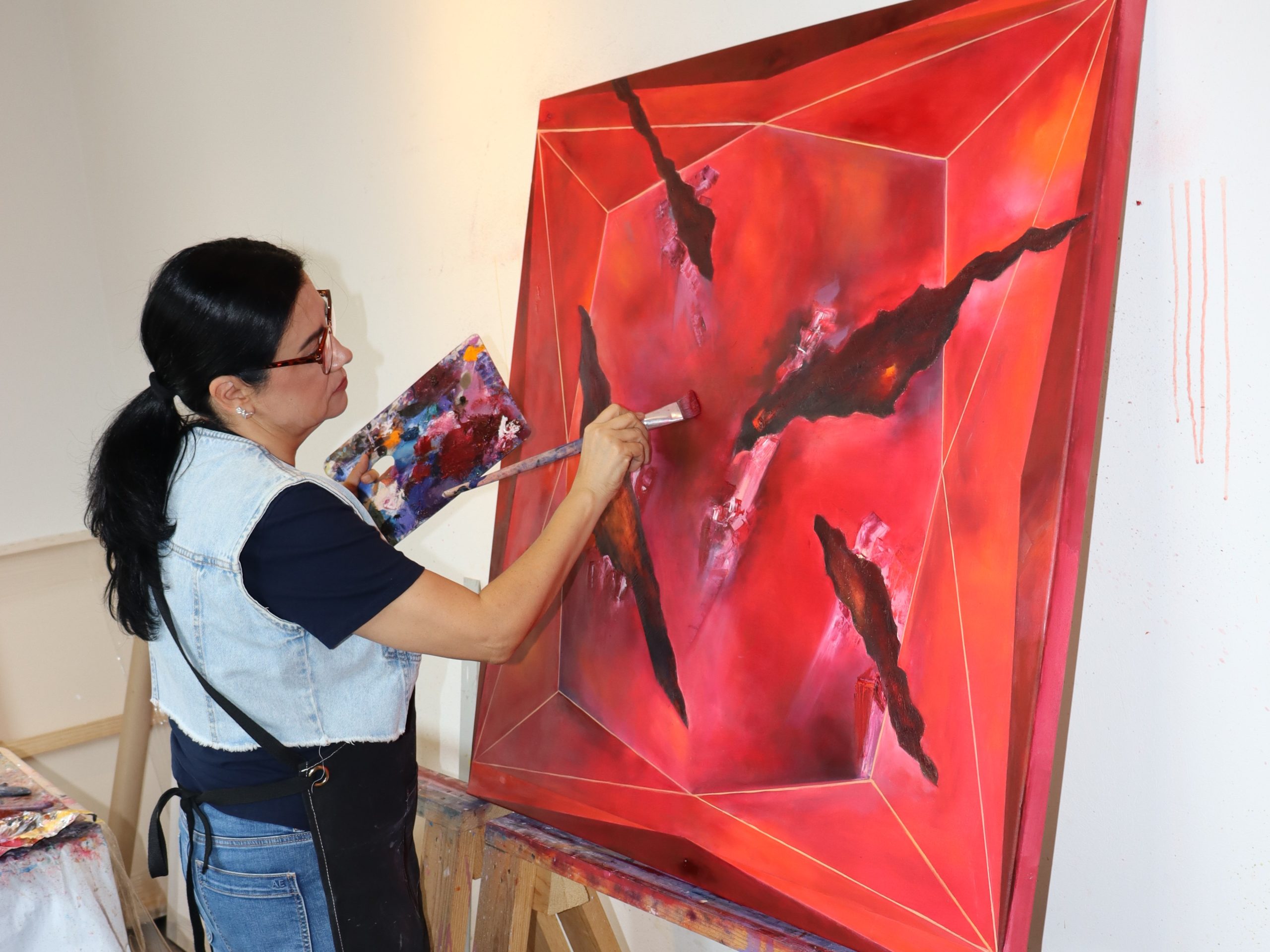 Su obra pictórica destaca por el uso expresivo del color, las texturas y la composición, invitando al espectador a un diálogo sensorial y emocional. Hoy, su pintura refleja la influencia de su pasado como joyera, fusionando la delicadeza de los metales y las gemas con la profundidad del arte abstracto.